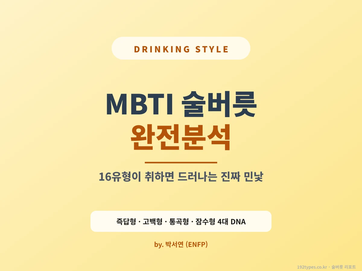 16유형이 술 마시면 어떻게 변할까? 고백형·통곡형·각성형·무변화형 4대 취중 DNA로 분류해서 정리했어. ENFP 3잔부터 사랑 고백, ISTJ 끝까지 멀쩡... 그 이유를 인지기능으로 풀었어.