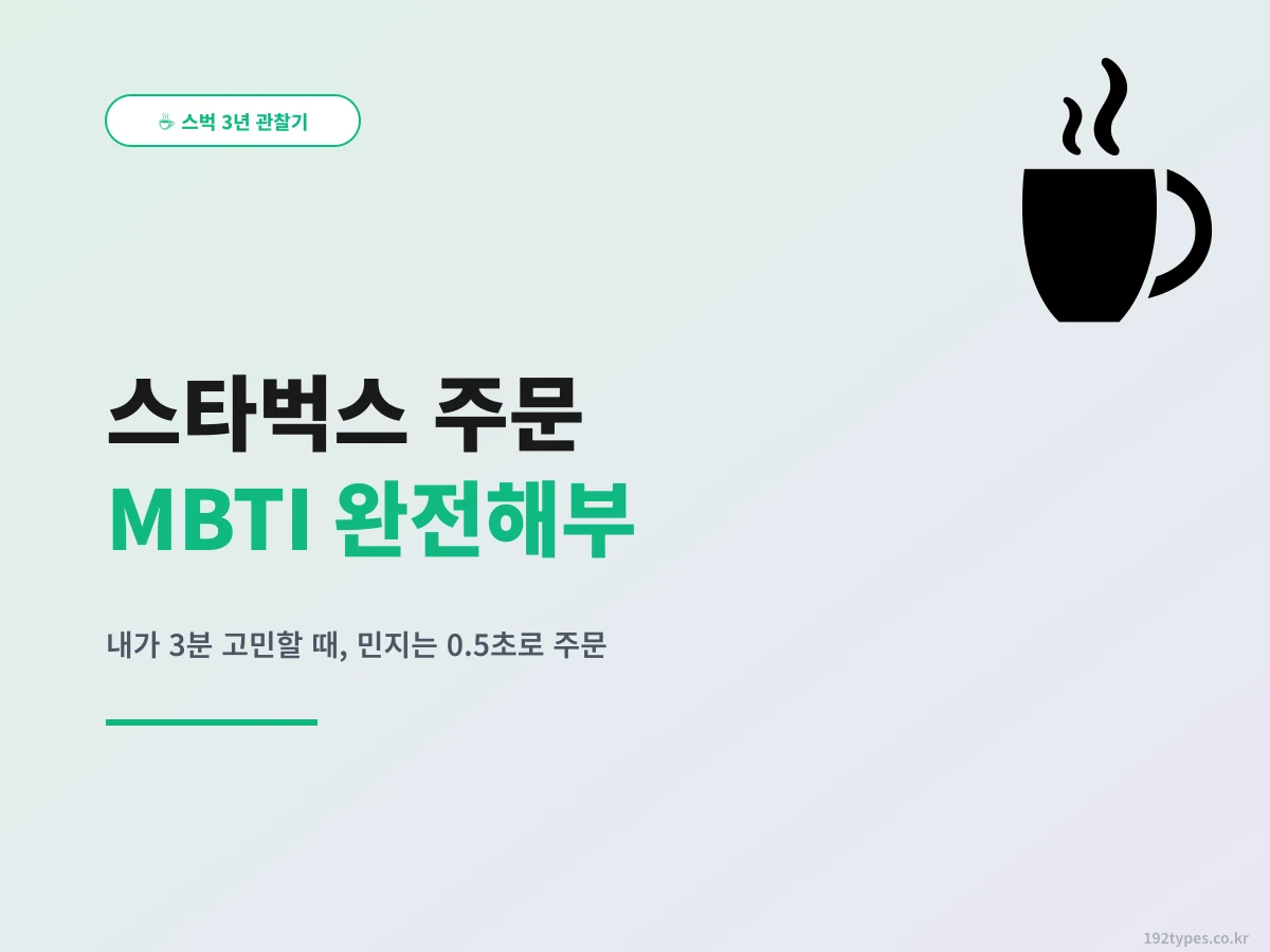 이 글 읽으면서 "어 나 저 패턴인데"라고 웃었다면, 이미 네 MBTI 성향이 주문에까지 드러나고 있다는 거야. 같은 스타벅스인데 16유형별로 완전히 다른 경험을 하는 거지.