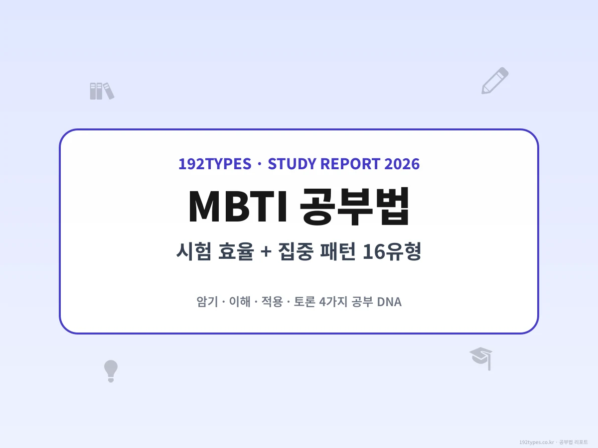함께 보면 좋은 글: MBTI 커리어 성공률 2026(공부 후 커리어 편), MBTI 번아웃 취약도 순위(수험생 번아웃 편), MBTI 스트레스 대응 스타일(시험 스트레스 편).